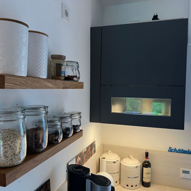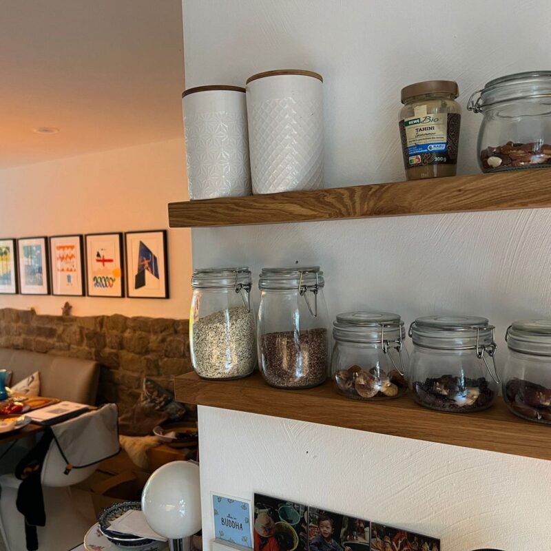 Bewusst haben wir uns dazu entschieden keine Fräsungen im Regal vorzunehmen. Denn es gibt so viele verschiedene Hersteller von Gewürzen, mit vielen verschiedenen Gebinden, dass wir unmöglich für alle Größen die passende Fräsung haben. Mit unseren Regalen bist du immer flexibel, egal welches Gewürz darauf Platz nehmen soll. Auch den Vorteil einer Funktion einer Vertiefung sehen wir nicht. Unsere Holz-Liebling Gewürzregale sollen clean, hochwertig und flexibel sein. Für jeden, in jeder Küche, für jeden Einsatz – Überzeugt euch selbst :-).