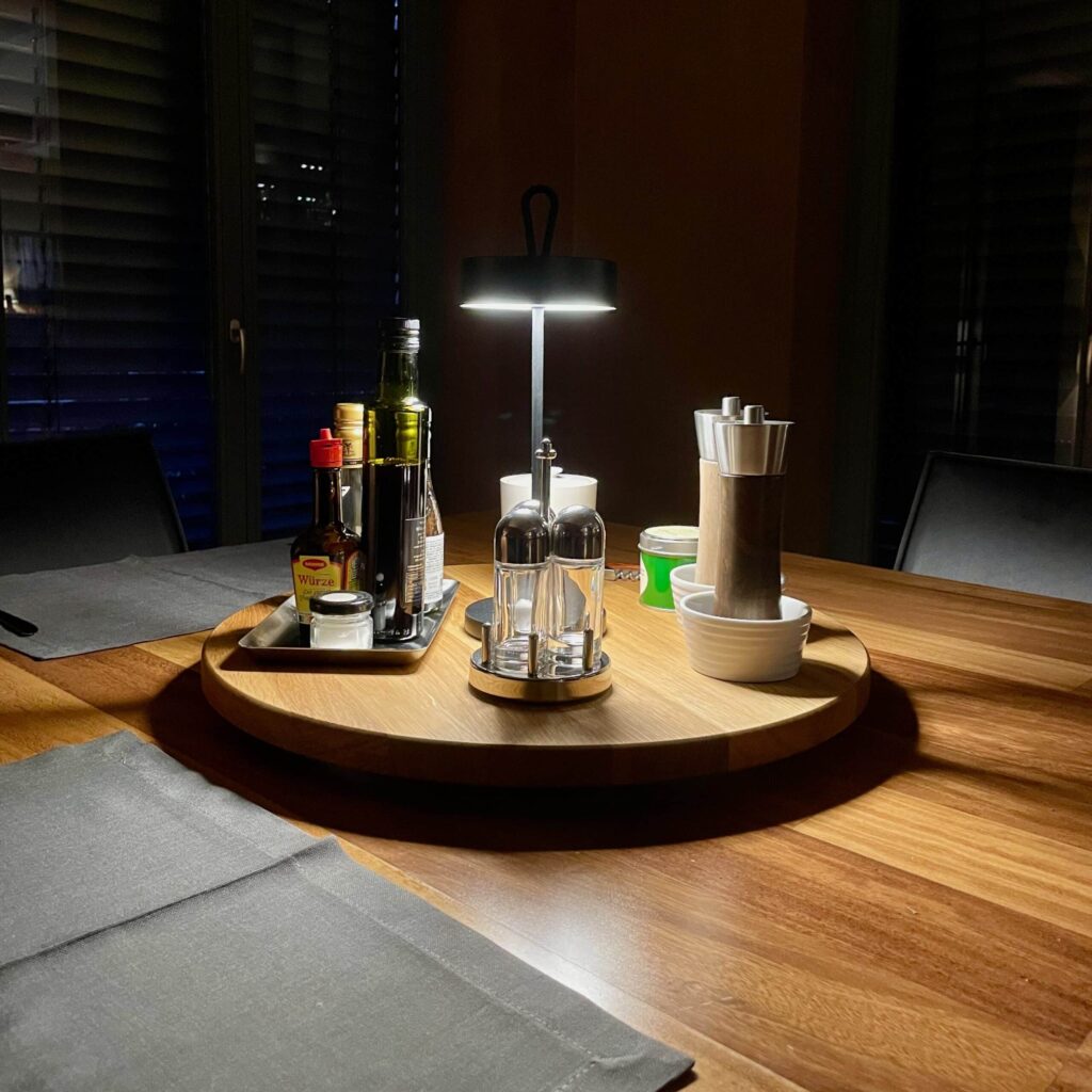 Auch als Drehbuffet nutzbar: Köstlichkeiten sind auf der Tischmitte sind so leichter für alle erreichbar – einfach in die gewünschte Position drehen.