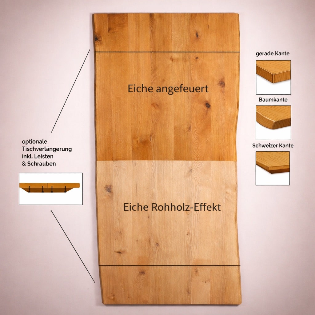 • Individuelle Maßanfertigung – Länge, Breite, Kante & Gestell