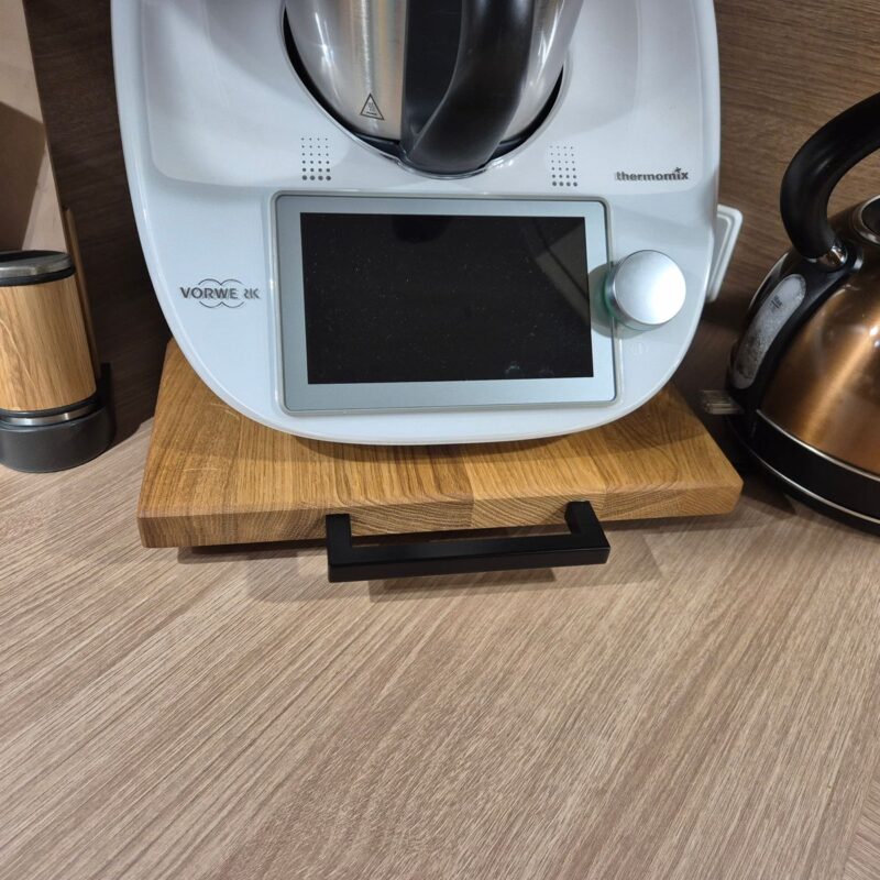 Wunderschön gearbeitetes Holzbrett mit guten stabilen Rollen, passt gut zum Thermomix TM3, danke.