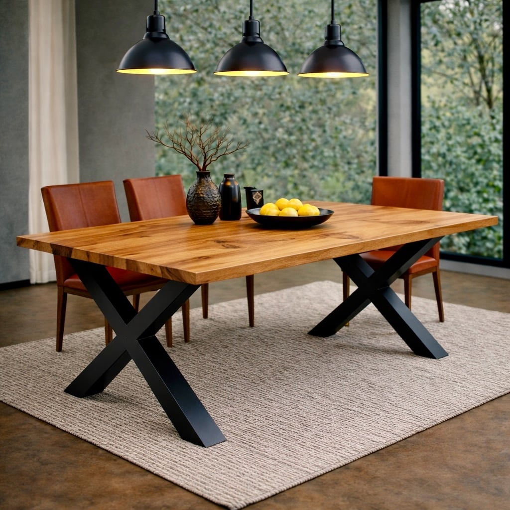 - X-Gestell: 140–280 cm – sehr stabil und markant, ideal für längere Tische mit ausdrucksstarker Maserung