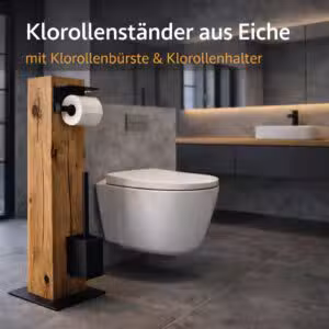 Du suchst einen Klorollenständer aus Eiche, der nicht wackelt, nicht billig wirkt und sich optisch wirklich sehen lassen kann? Bei Holz-Liebling fertigen wir deinen freistehenden Toilettenpapierhalter aus einem massiven 15 × 15 cm Eichenbalken – kombiniert mit einem schwarzen Stahlfuß und hochwertigen Anbauteilen für einen modernen, industrial-inspirierten Look.