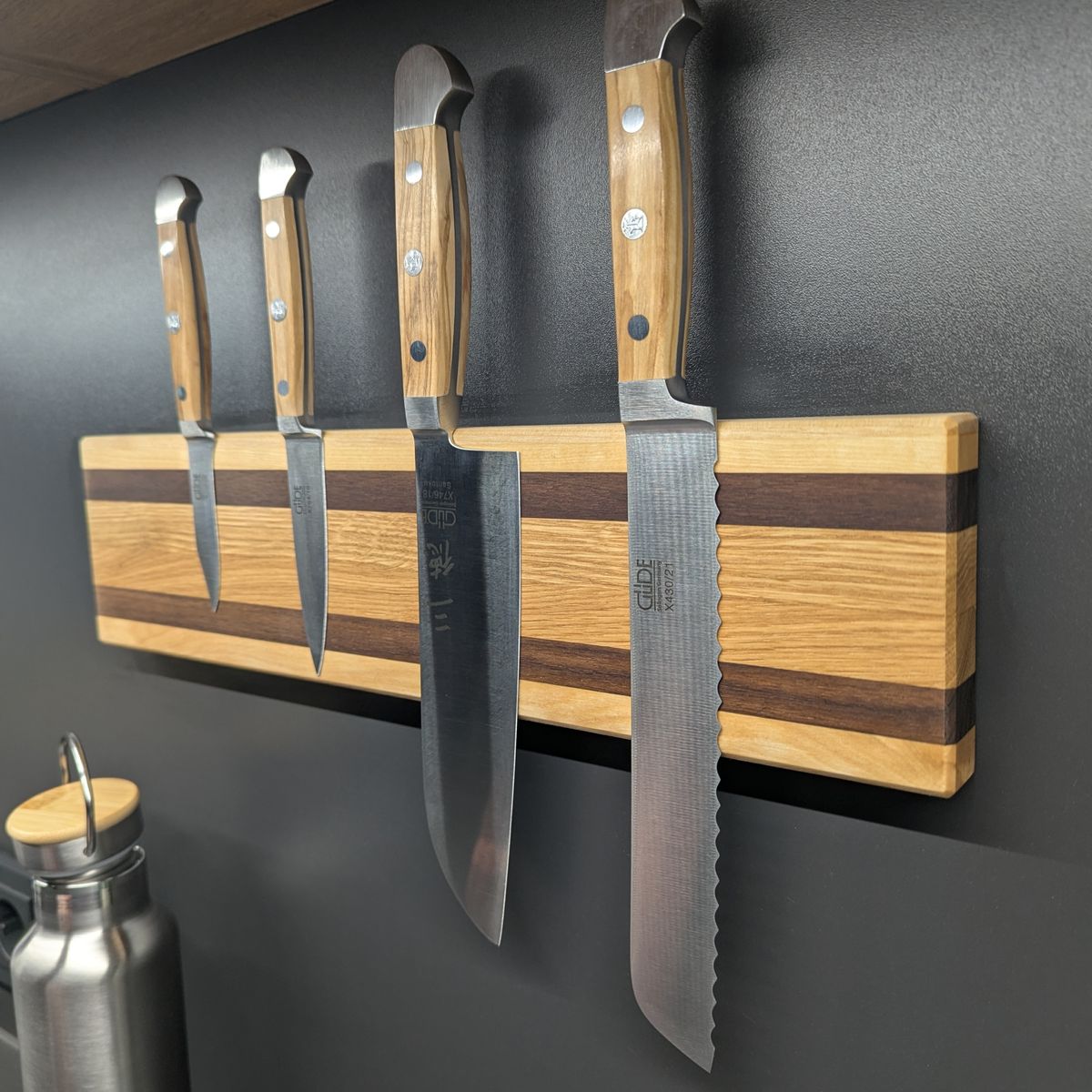 magnetische Messerleiste aus Eiche, Birke und Nussbaum