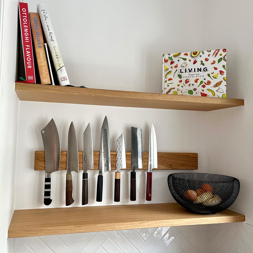 Was den magnetischen Messerleiste Konfigurator jedoch wirklich einzigartig macht, ist die Möglichkeit, deine Messerleiste nach deinen eigenen Vorstellungen anzupassen. Mit fünf Holzarten und einer frei wählbaren Größe kannst du sicher sein, dass deine magnetische Messerleiste perfekt zu deiner Küche passt.