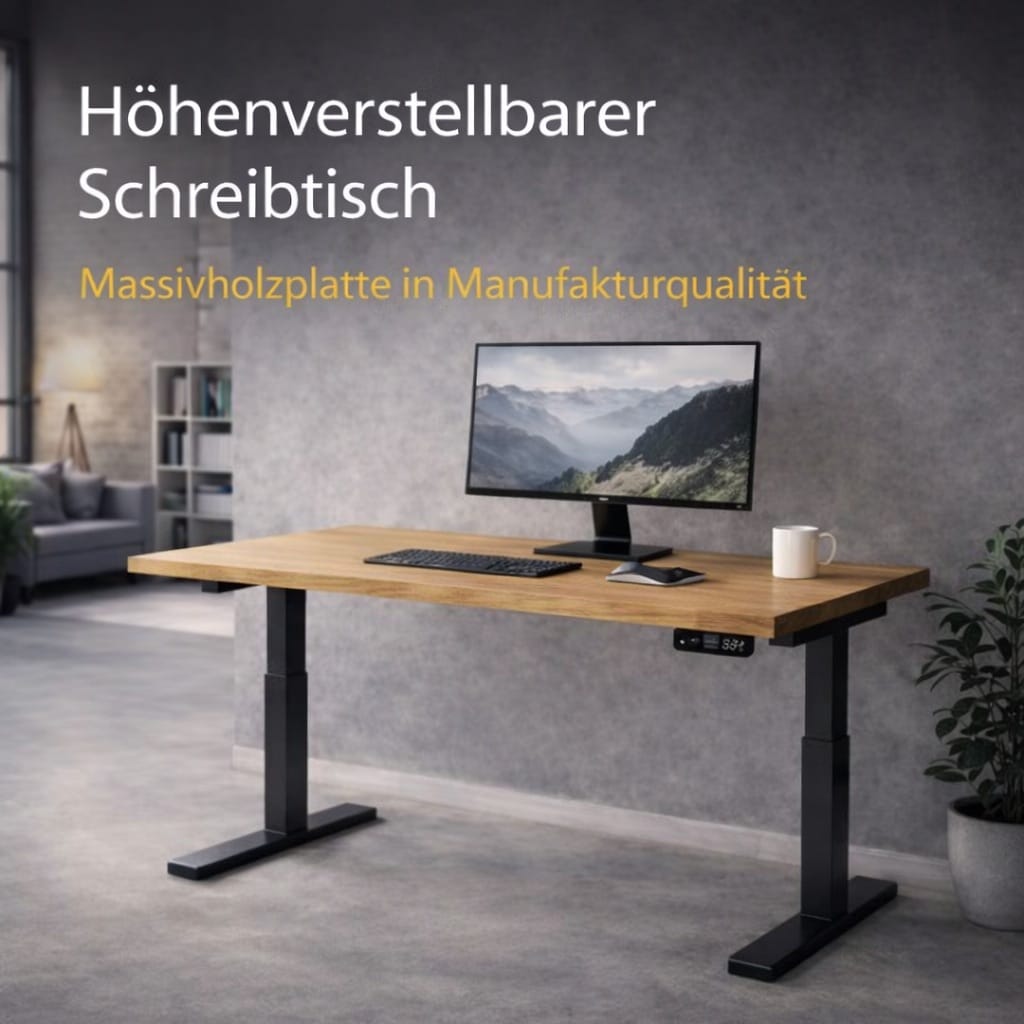 - Produkt: Massivholz-Bürotisch / Schreibtisch (höhenverstellbar)