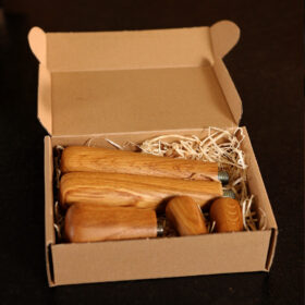 Die natürlichen Holzoberflächen fühlen sich angenehm warm und griffig an – und machen aus deiner Maschine ein echtes Einzelstück. Dank der einzigartigen Maserung ist jedes Set ein Unikat.