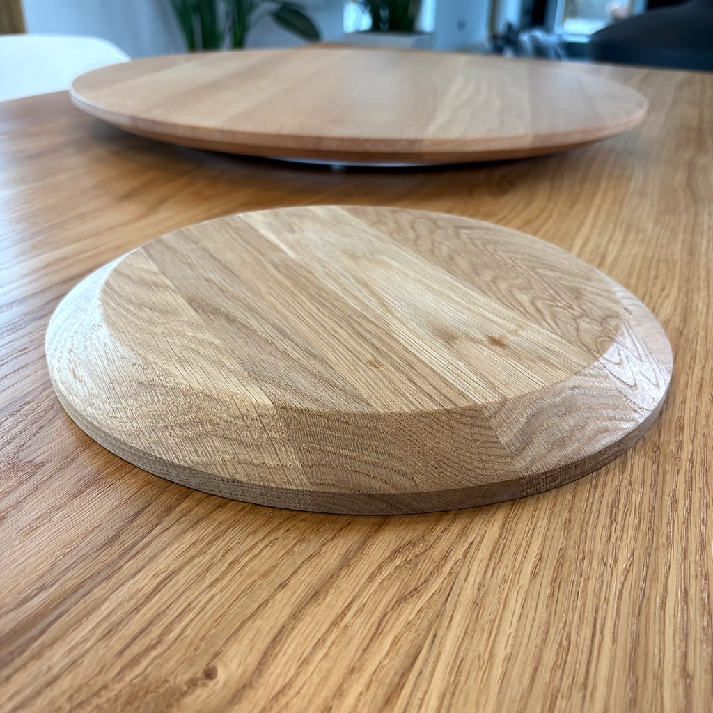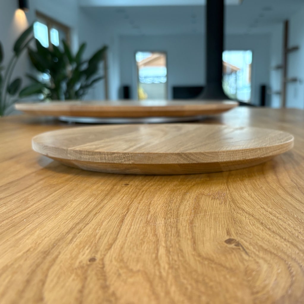 Rundes Servierbrett aus Eichenholz mit Schweizer Kante