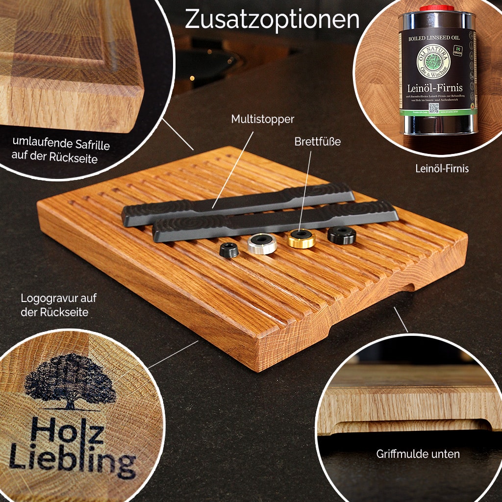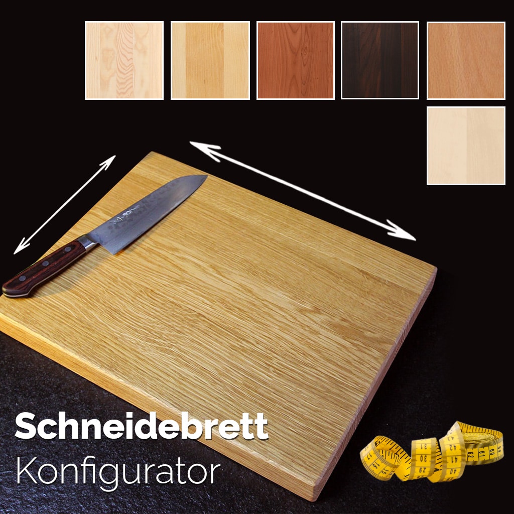 Wähle aus verschiedenen Brettstärken, individueller Größe, Holzarten und zusätzlichen Features.