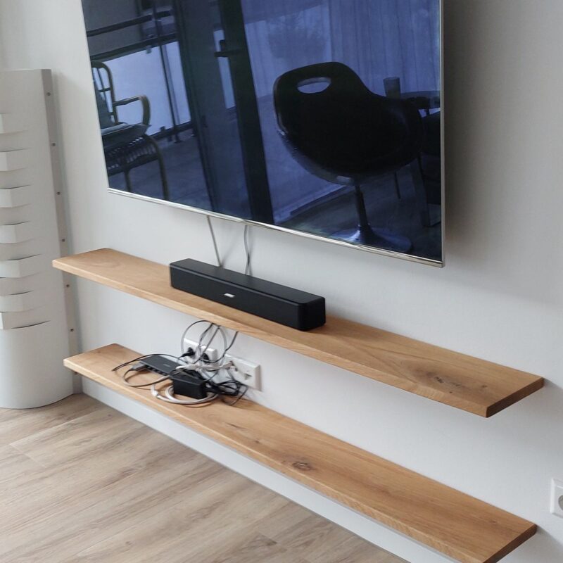 Eichenholz Wandboard mit Wunschmaß, in 2,5 oder 4cm Stärke inkl. schwebender Wandhalterung