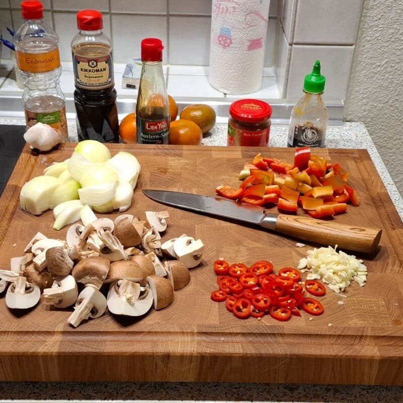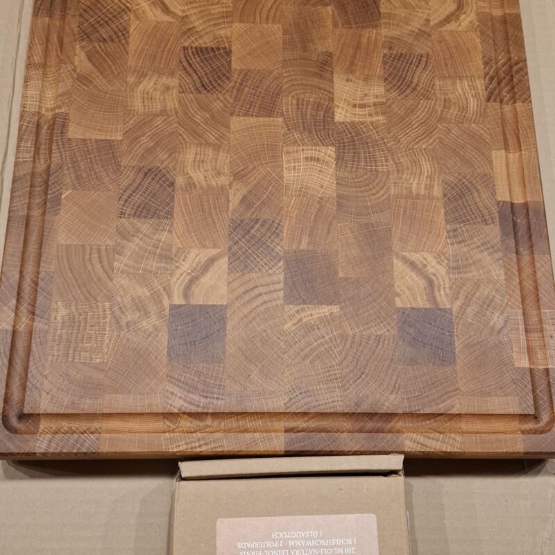 Wir waren schon lange auf der Suche nach einem Eiche Stirnholzbrett. Wir kochen täglich frisch und die Kunststoffbretter sahen immer sehr schnell unansehnlich aus.
