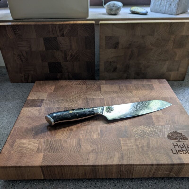 Schneidbretter eignen sich für diese Art besonders gut, da sich Schnitte im Brett selbst schließen. Die Oberfläche ist extrem hart und sieht auch nach Jahren unter Benutzung, immer noch gut aus.